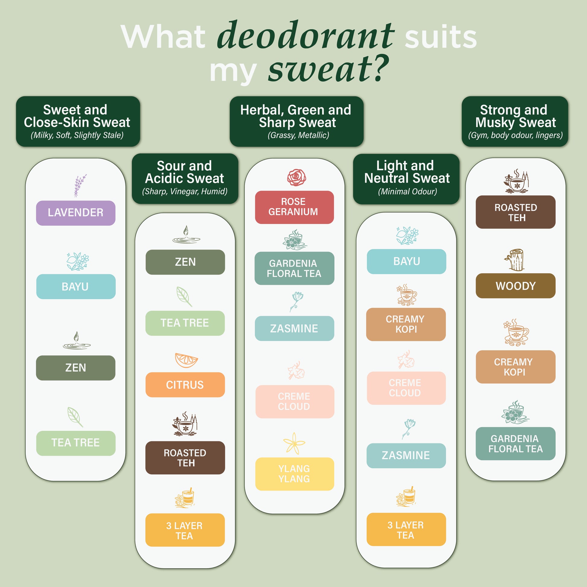 I found this recipe to be useful for active and sporty person as well as office and less sweaty person. I have been struggling with bad odor all the time sicne young, the problem is still persisted after I tried many deodorant products. I understand how troublesome to have smelly armpit and how it affects our daily life. Give it a try and let me know! - founder Hoi Meng
